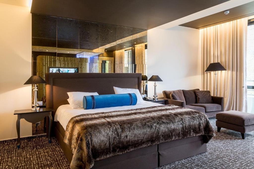 À l’intérieur, le contraste est saisissant et très réussi. Les chambres offrent un confort contemporain, avec des lignes épurées et des matières douces. On s’y sent immédiatement à l’aise, loin des décors parfois trop chargés de certains hôtels de luxe.