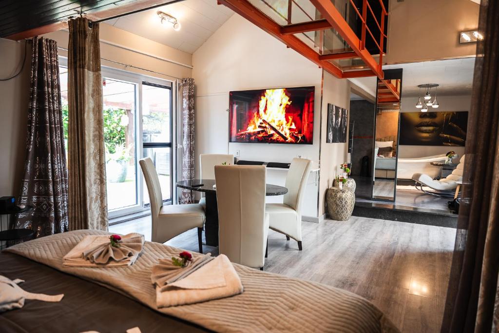 C’est le gros point fort de cette suite. Vous disposez d’une cuisine entièrement équipée (four, lave-vaisselle, grand frigo). Vous avez donc la liberté totale de vous préparer un dîner romantique sur place, sans bouger de votre nid. Installez-vous dans le coin salon confortable (lecteur CD pour l’ambiance musicale) ou profitez de la terrasse privée donnant sur le jardin pour prendre l’apéro.